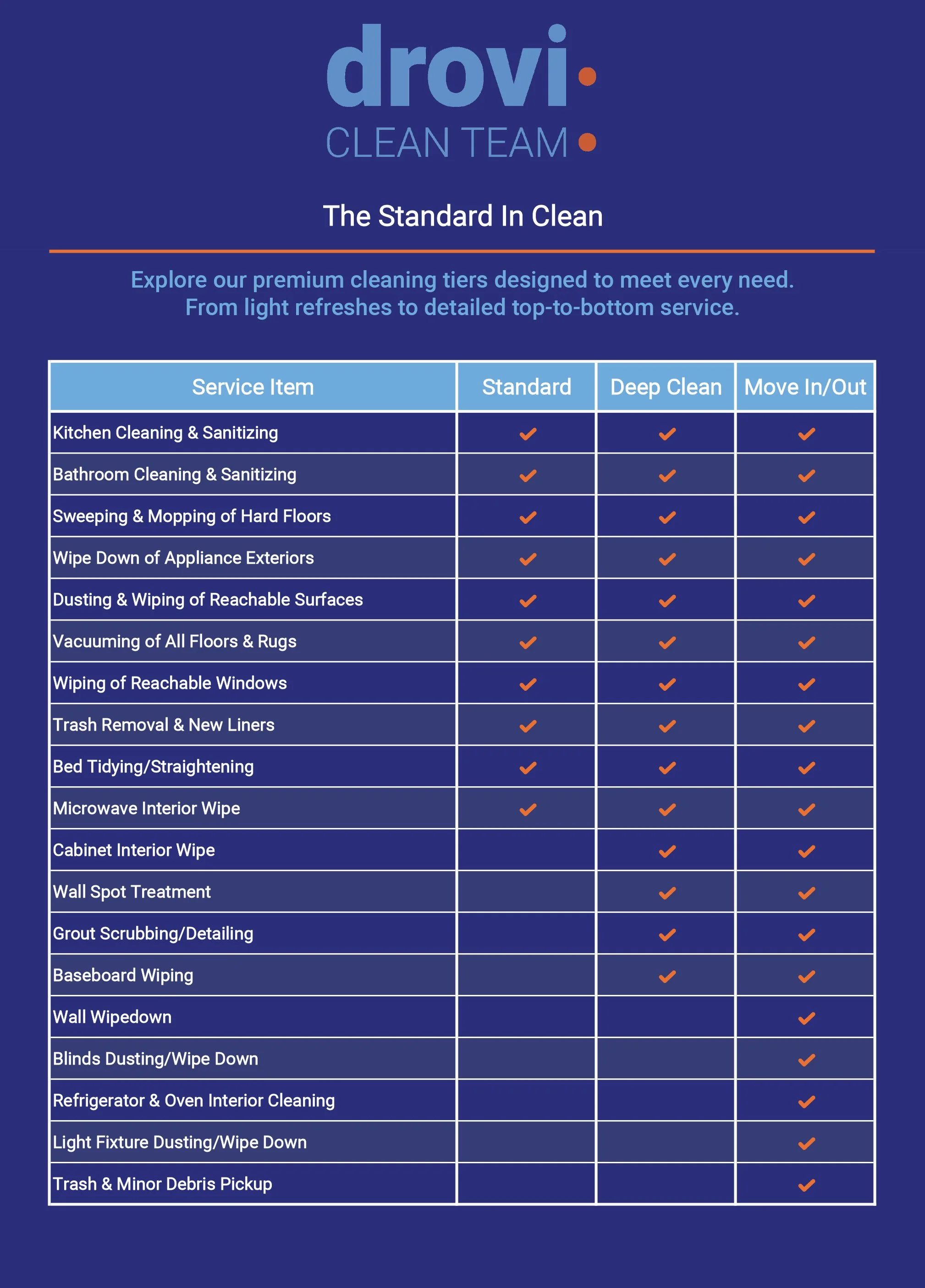 This service is ideal for renters hoping to secure their deposit, homeowners getting ready to list, or anyone who simply wants to move with peace of mind. We treat every home like it’s our own — with care, attention, and unmatched detail.
